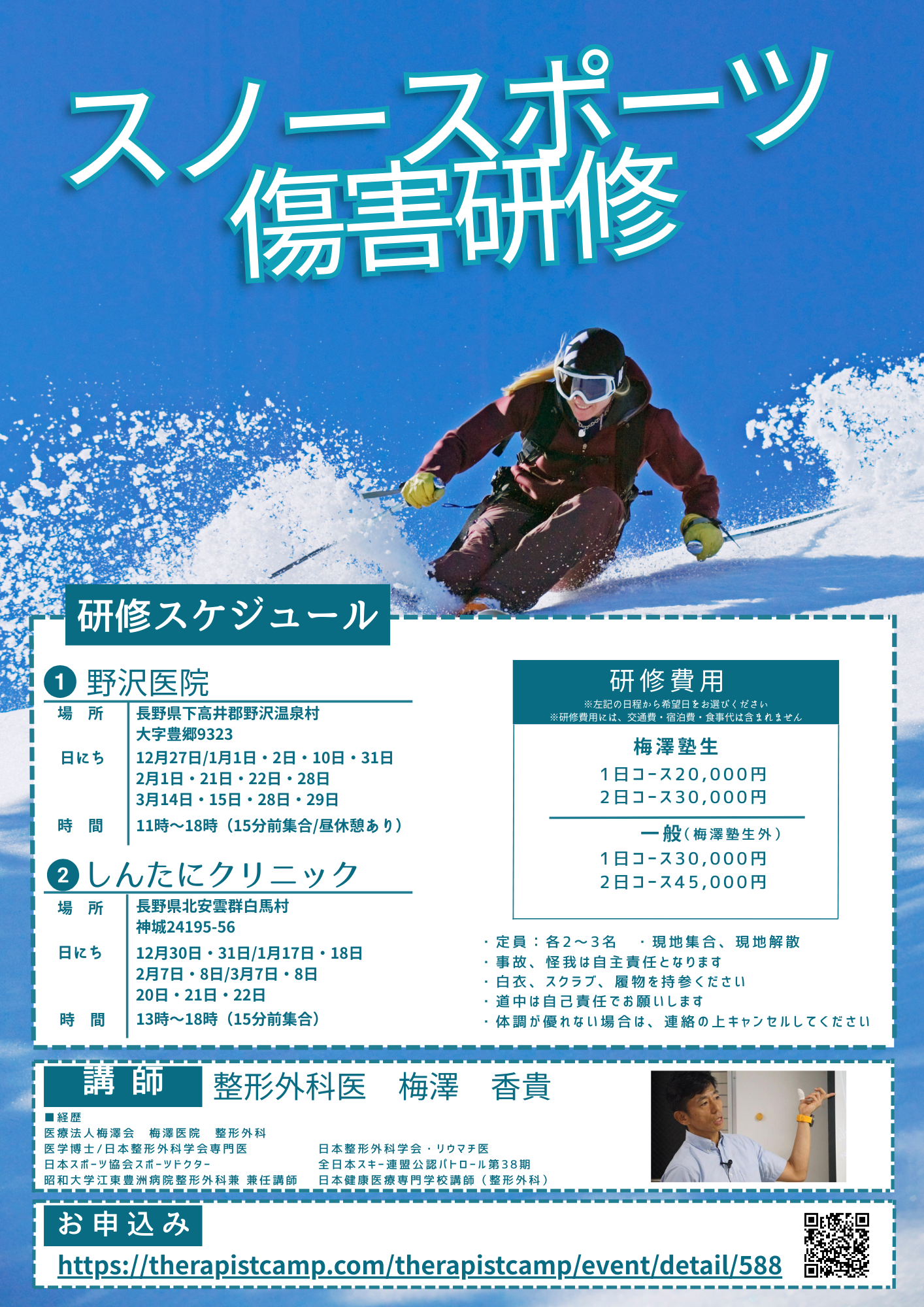 【梅澤塾生割引】12月27日 1日コース 野沢医院会員限定 |